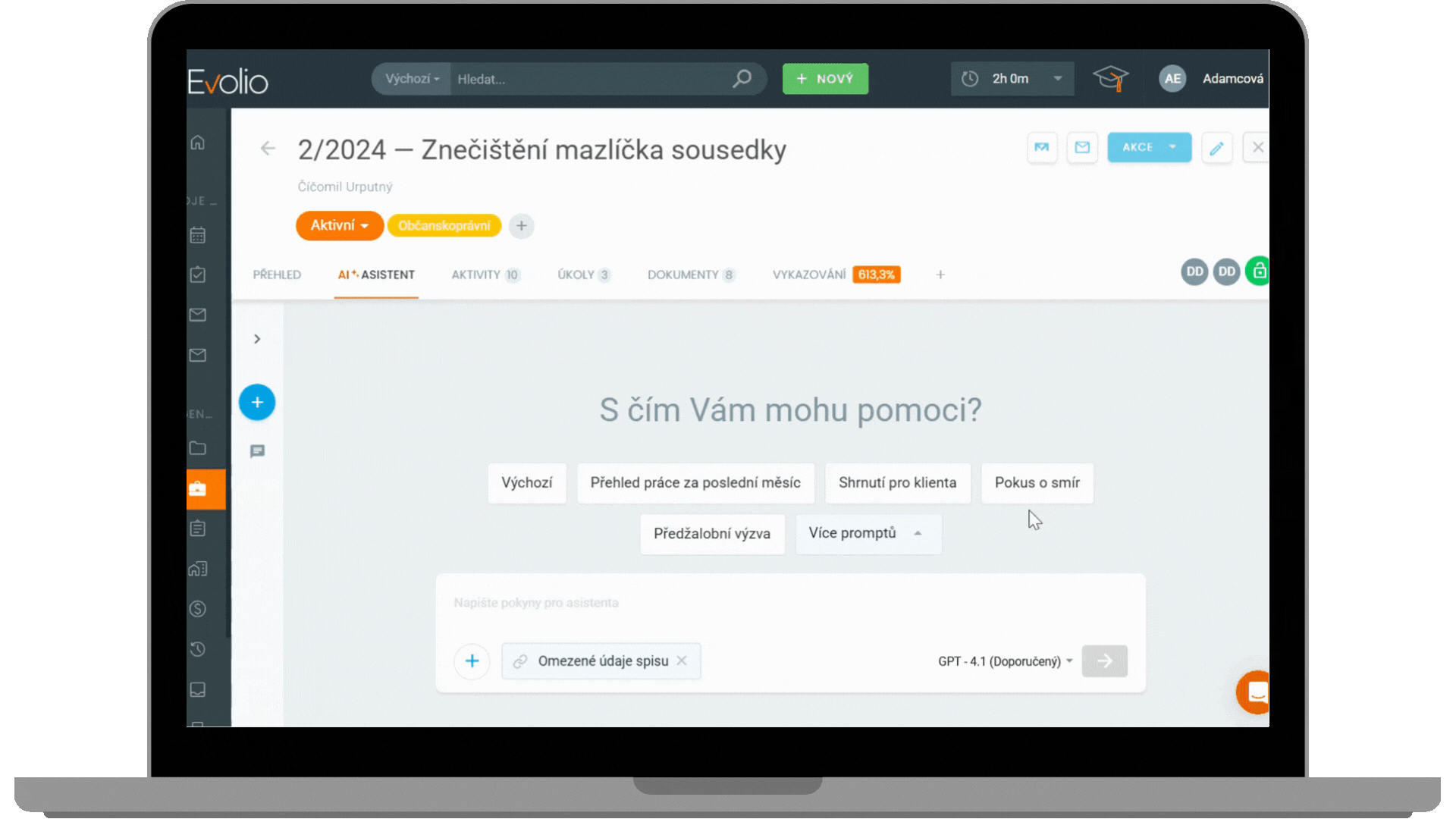 Nová generace Evolia vám dává do rukou AI, která rozumí kontextu vašich spisů. Pomůže analyzovat dokumenty, shrnout složité informace a zjednodušit týmovou práci, abyste měli více času na to důležité – pečovat o klienty a vyhrávat případy.